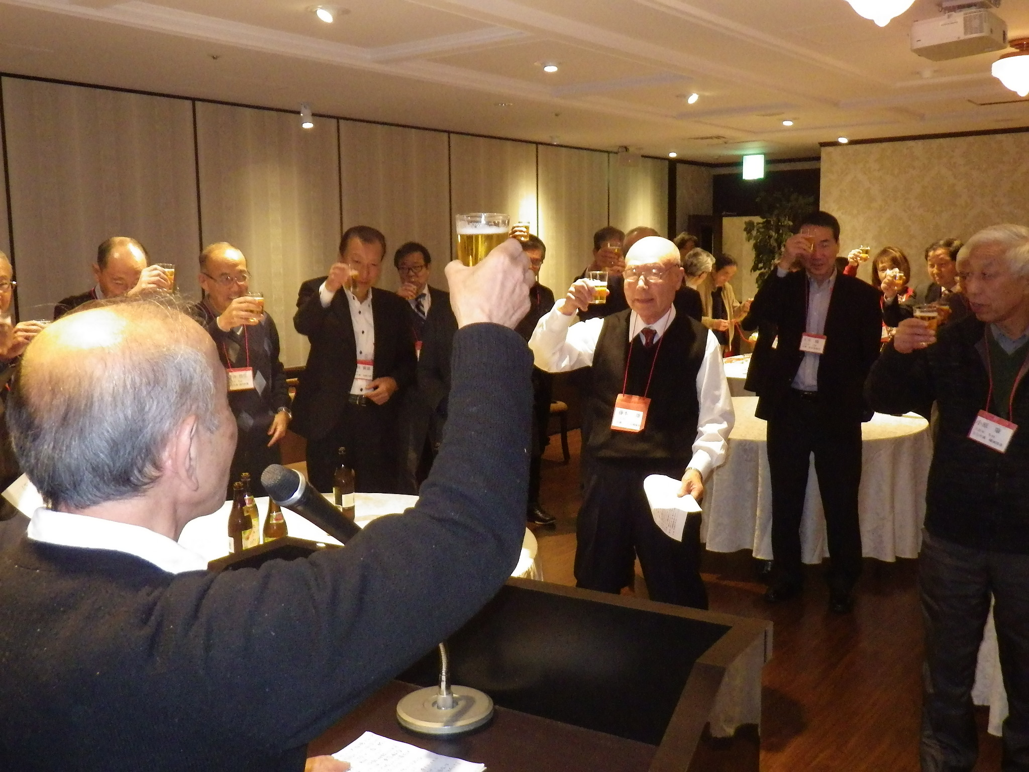 ありがとうございます。5名の初参加もあり、大勢の方々にお集まりいただけました。カンパーイ!!